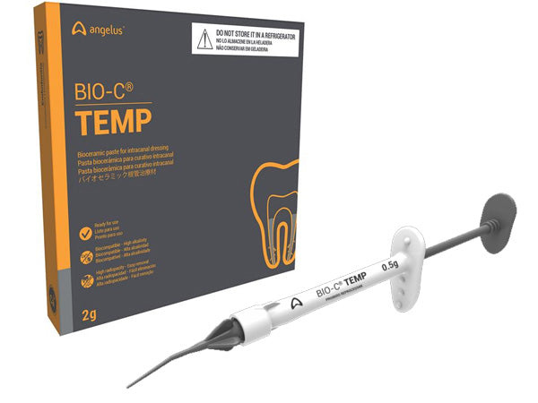 The first session involved anesthesia, endodontic access correction, absolute isolation, and root canal preparation. During the mechanical chemical preparation, constant irrigation and patency of the canal were used at each file change. The first session concluded with the canal being filled with the intracanal dressing BIO-C® TEMP® (Angelus), followed by a radiograph to confirm that the canal had been filled (Figure 2).