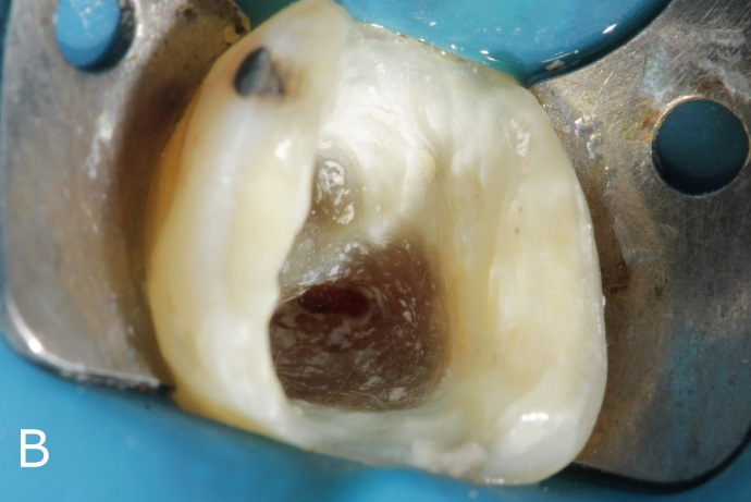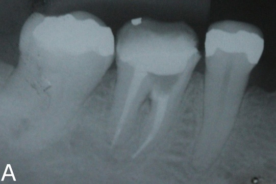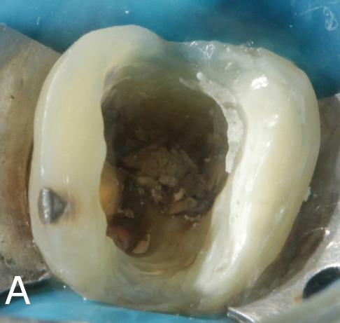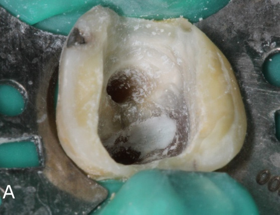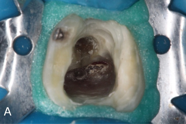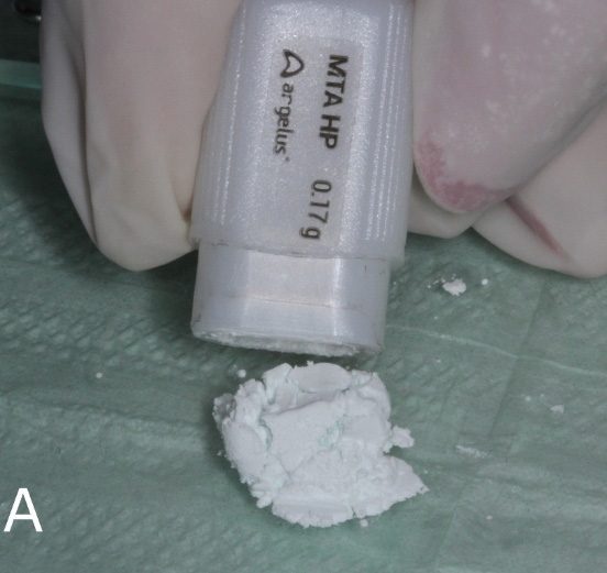 Figure 8: Clinical aspect after sealing the perforation (A).