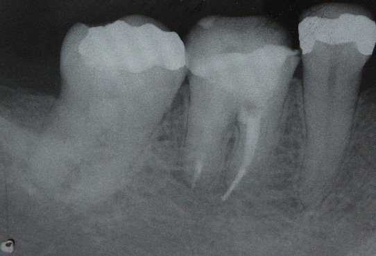 A 42-year-old female patient came to the private practice complaining of spontaneous pain on tooth number 36. According to the patient file, endodontic retreatment had been performed on it. During the clinical exam, the tooth presented positive vertical and horizontal percussion tests. Radiographically it showed a lesion in the furcation region, and endodontic treatment (Figure 1).