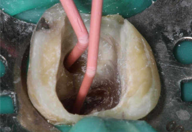 Figure 4: Gutta-percha cones protecting the entrance of the root canals.