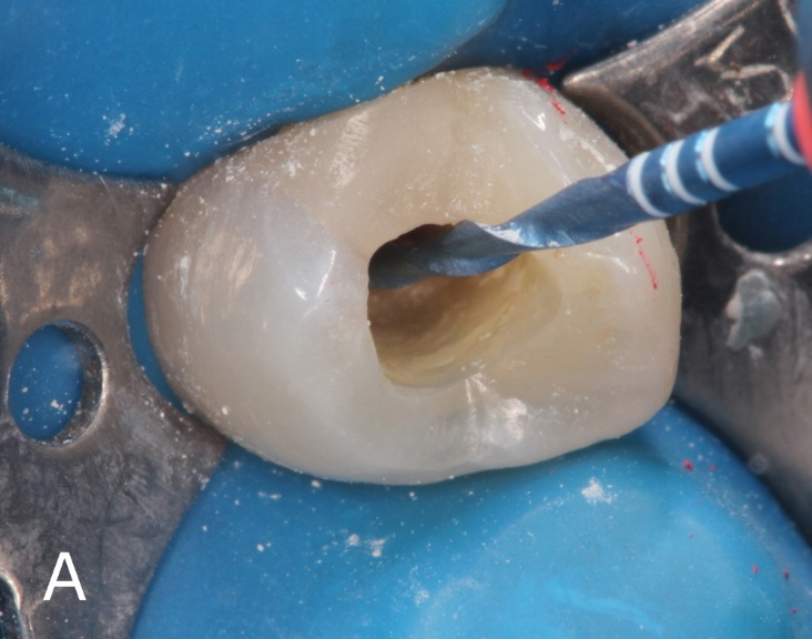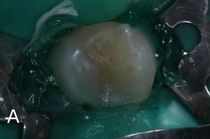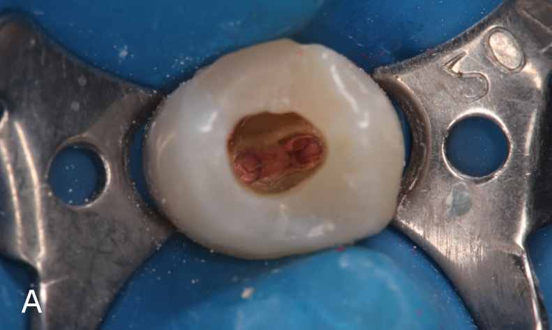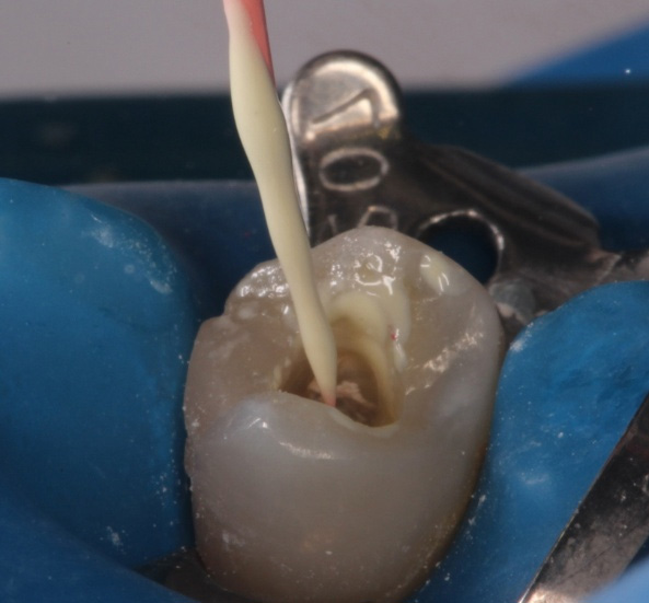 In the first appointment, was performed the coronary access with a diamond bur and a non-active tip drill (Endo Z, Angelus Prima), preparation of the cervical and middle third with Hedstroem hand files (Dentsply) and Gates Glidden #2, #3, and #4 drills (Angelus Industria de Produtos Odontológicos). Constant irrigation with 2.5% sodium hypochlorite was performed. Calcium hydroxide-based intracanal dressing and temporary restoration with IRM were used.
