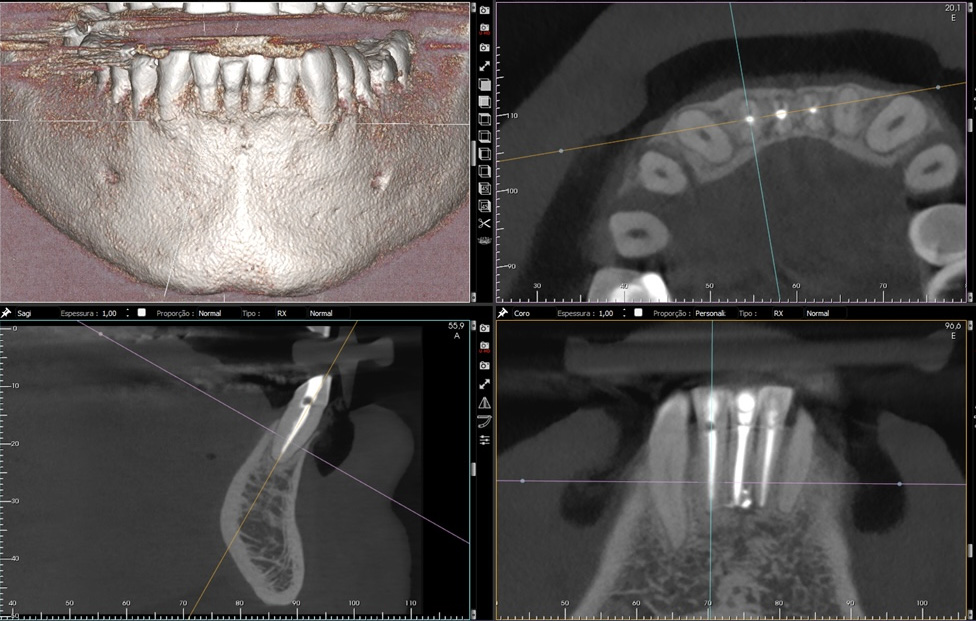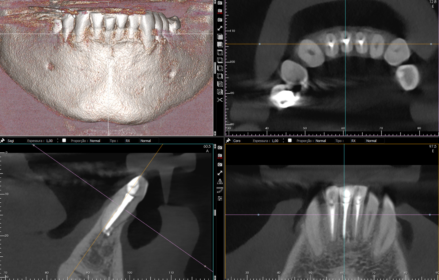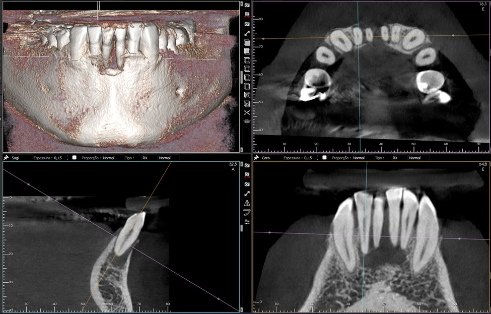 A patient presented to the office with a dentoalveolar abscess and severe pain. A CBCT exam was requested, revealing extensive bone loss between teeth 31, 41, and 42. Clinically, there was grade 3 mobility, but no periodontal pocket. Coronal opening was performed on all three teeth, along with instrumentation and preparation up to a size 40 instrument, and Bio C Temp (Angelus, Londrina, Brazil) was used. The procedure was repeated 30 days later, and Bio C Temp was re-inserted. In the third session, the filling was performed with Bio C Sealer (Angelus, Londrina, Brazil). CBCT images at 1 year and 10 months and 3 years later revealed complete repair of the periapical lesions. Clinically, the patient is asymptomatic and functional.
