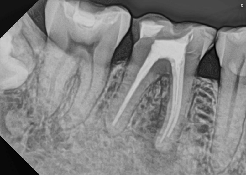 A 6-month tomographic follow-up showed complete reduction of the apical periodontitis.