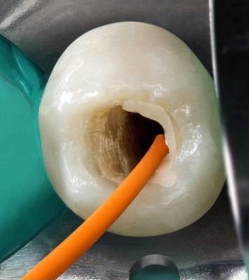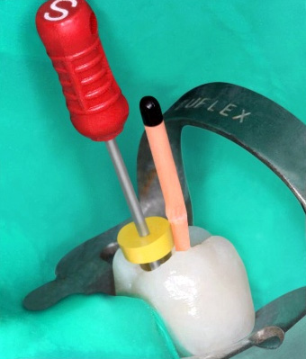 Figure 4C. Insertion of gutta-percha cones into the root canal.