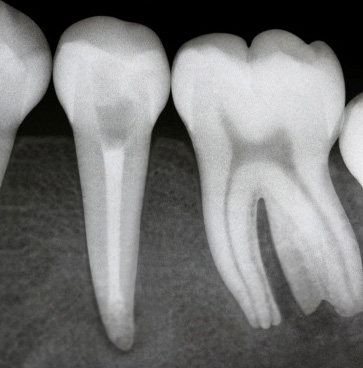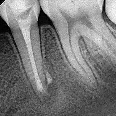 Figure 2B. Radiographic aspect inside the root canal after the first change.