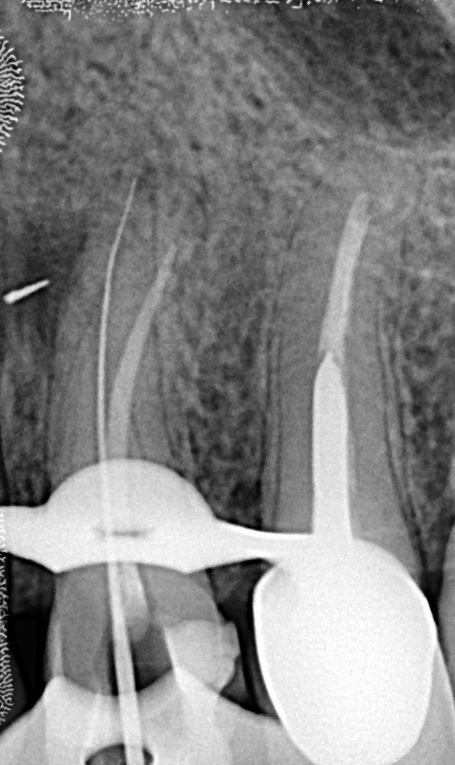 After the filling was completed, the pulp chamber was sealed and a final radiograph was taken, and the patient was instructed to return for follow-up.